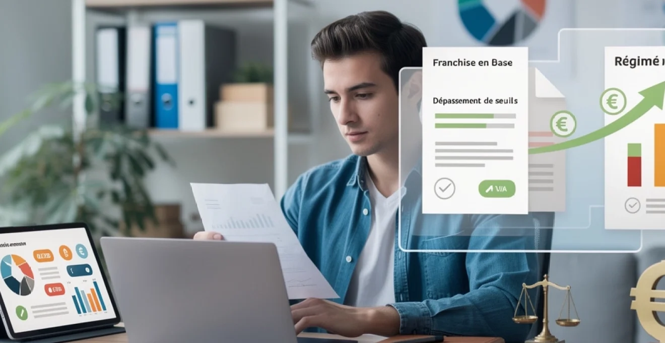 Deux niveaux de seuils coexistent : un seuil de franchise « de base » (91 900 € ou 36 800 € selon l’activité en 2024) et un seuil majoré, légèrement supérieur. Si vous dépassez le seuil de franchise sans franchir le seuil majoré, vous resterez en franchise en base l’année en cours, mais vous deviendrez assujetti à la TVA au 1er janvier de l’année suivante. À l’inverse, si vous dépassez le seuil majoré au cours d’une année, la TVA devient applicable dès le premier jour du mois du dépassement.
